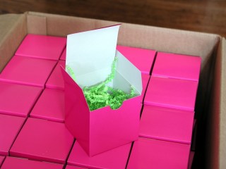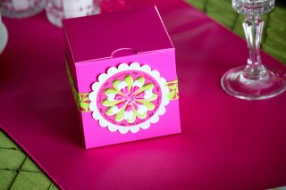 The boxes came from efavormart.com and I found the ribbon on clearance for $1 a roll at Michaels. I designed the label with my usual Storybook software and printed it on Avery round labels. I cut the flower out of the Eclips and put the label on the flower.