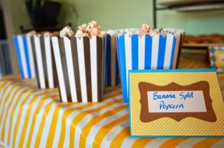 I picked up random blue, yellow and brown candy at Party City to fill the boxes with.