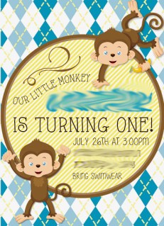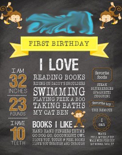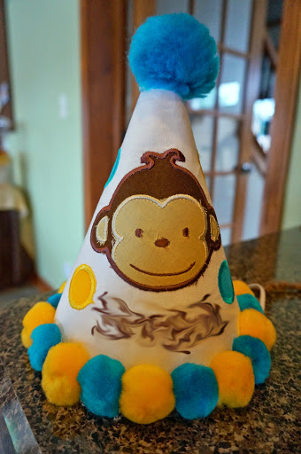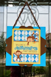 When planning his birthday party and theme I went with a general monkey theme. We don’t watch a lot of TV and really it’s hard to tell what a 1 year old in really ‘into’. My cousin Beth with Beth Kruse Custom Creations designed my party printables. I normally do this kind of thing on my own but there were just too many things going on in our lives at the time for me to add 1 more thing to my plate. She has fabulous parties so I knew I was outsourcing to someone great!