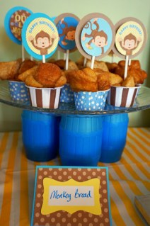 You can’t have a monkey party without mokney bread 🙂 We were doing a cupcake cake as the cake so I also needed to do something in little cups so I could use the topper printables from Beth.