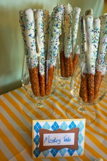 White chocolate covered pretzel rods with sprinkles. I love the sweet and salty combination of these.