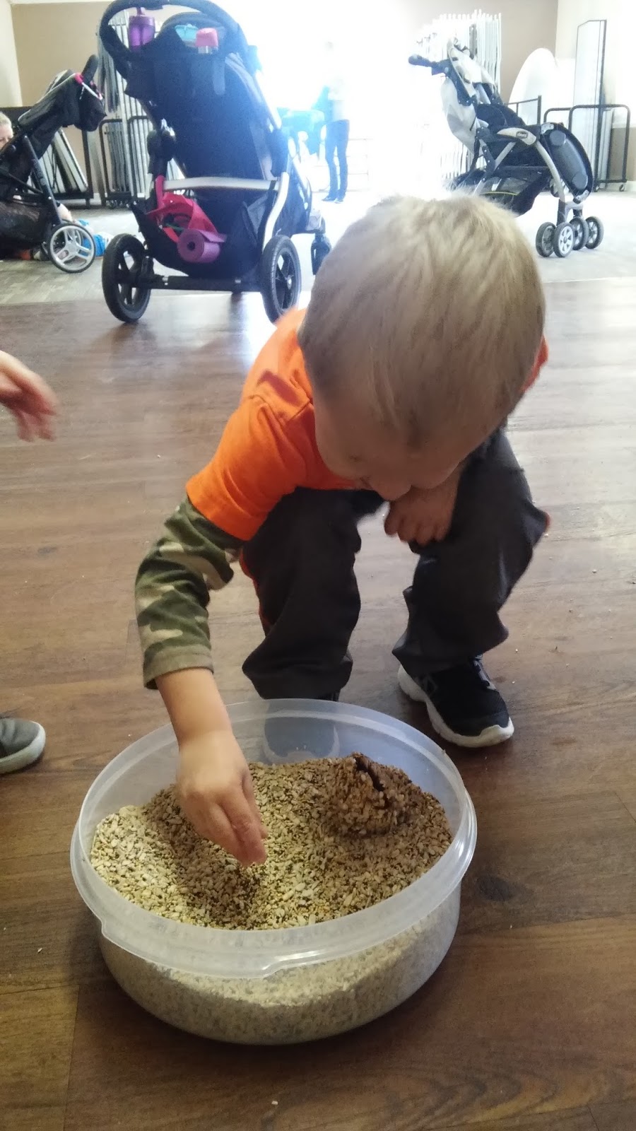 All kids need to be exposed to different textures and not just 1 time. I remember the first time JP felt grass, he’d army crawl off of the blanket and touch it and didn’t know what to do about it. If you sat him in it he would lift 1 leg up so it wasn’t touching and try to lift the 2nd leg up. He’d look at you like what on earth are you doing to me. It was new for him so he had to learn. It’s like that with all textures…sand, stickers etc. I try to incorporate some of that into our weekly activities with the kids.