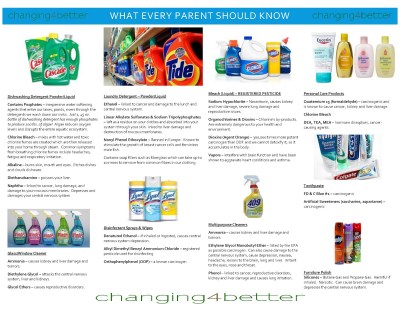 The manufacturers of the ‘leading brands’ such as Cascade, Johnson & Johnson baby products, Eucerin, Tide, Windex, Clorox, Pledge, Lysol, 409 etc. all have products with ingredients of concern like listed above. Why are they allowed into our homes?
