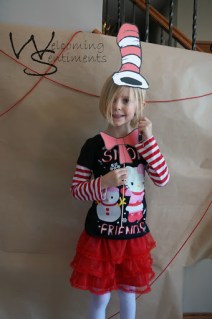For the snacks I made Green Eggs and Ham and then little Cat in the Hat treats on a stick.