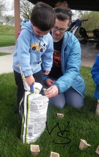 I also had plastic cups on hand because I knew these moms were going to need a more stable/mess free way to get their pots home! Turns out it’s a perfect container to keep it in too for watering.