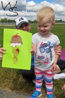 While the paint is drying you can add on the ice cream and toppings. Once the paint dries you can use a brown marker and make the ‘waffle’ effect on the cone.