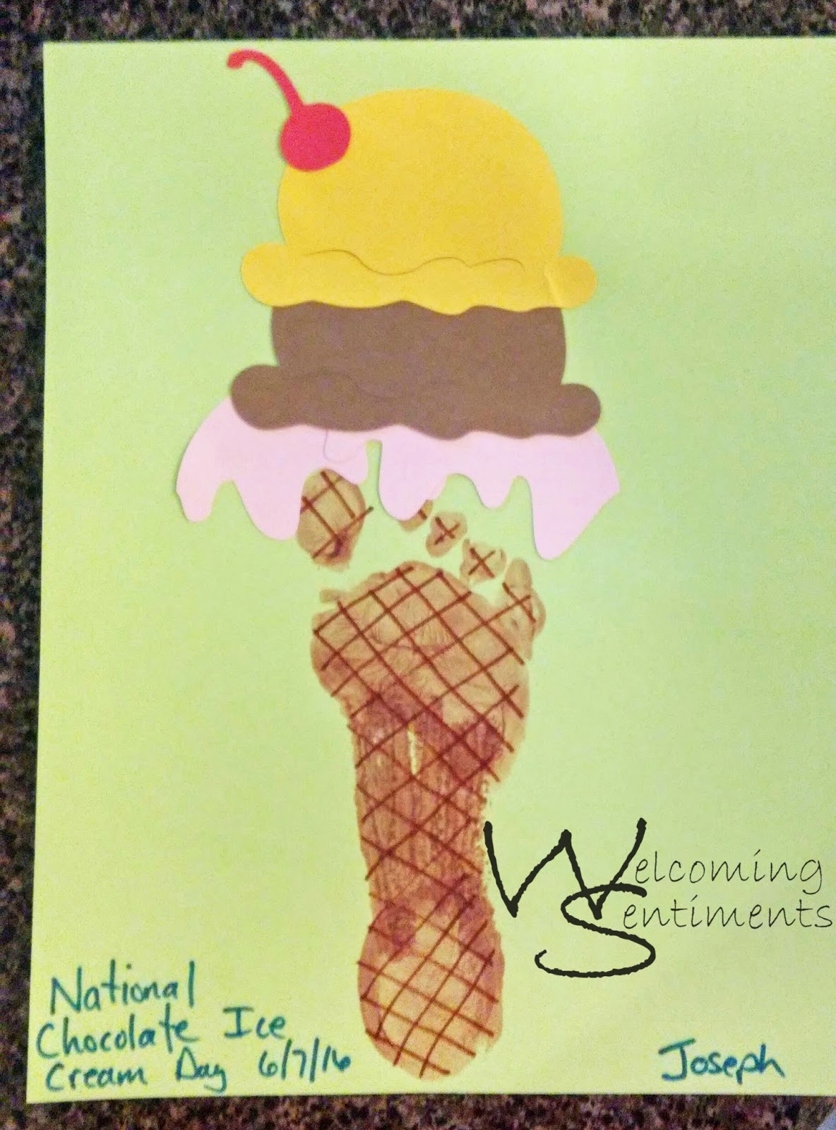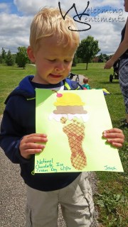 For this craft I cut out the ice cream shapes and cherries from one of the Sizzix Eclips cartridges I have. JP’s foot is so big I had to kind of merge a couple of the melting layer to make it fit right across the ‘cone’!