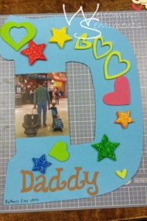 I trimmed the picture so it was the same width as the D and didn’t hang over. JP loved the stickers. I had to keep them out of his reach or he would have put stickers on everything! I’m glad he has fun with them now because he went through a brief phase where he was really scared of them. He would cringe and bring his hands to his body and almost panic. It took some practice to work through it and show him there wasn’t anything to be scared of and now he loves stickers.