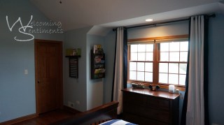 The picture at the beginning of the post had a clean bed.  These last 2 are all of the things we position in the bed somehow each night and a truer picture of the room!