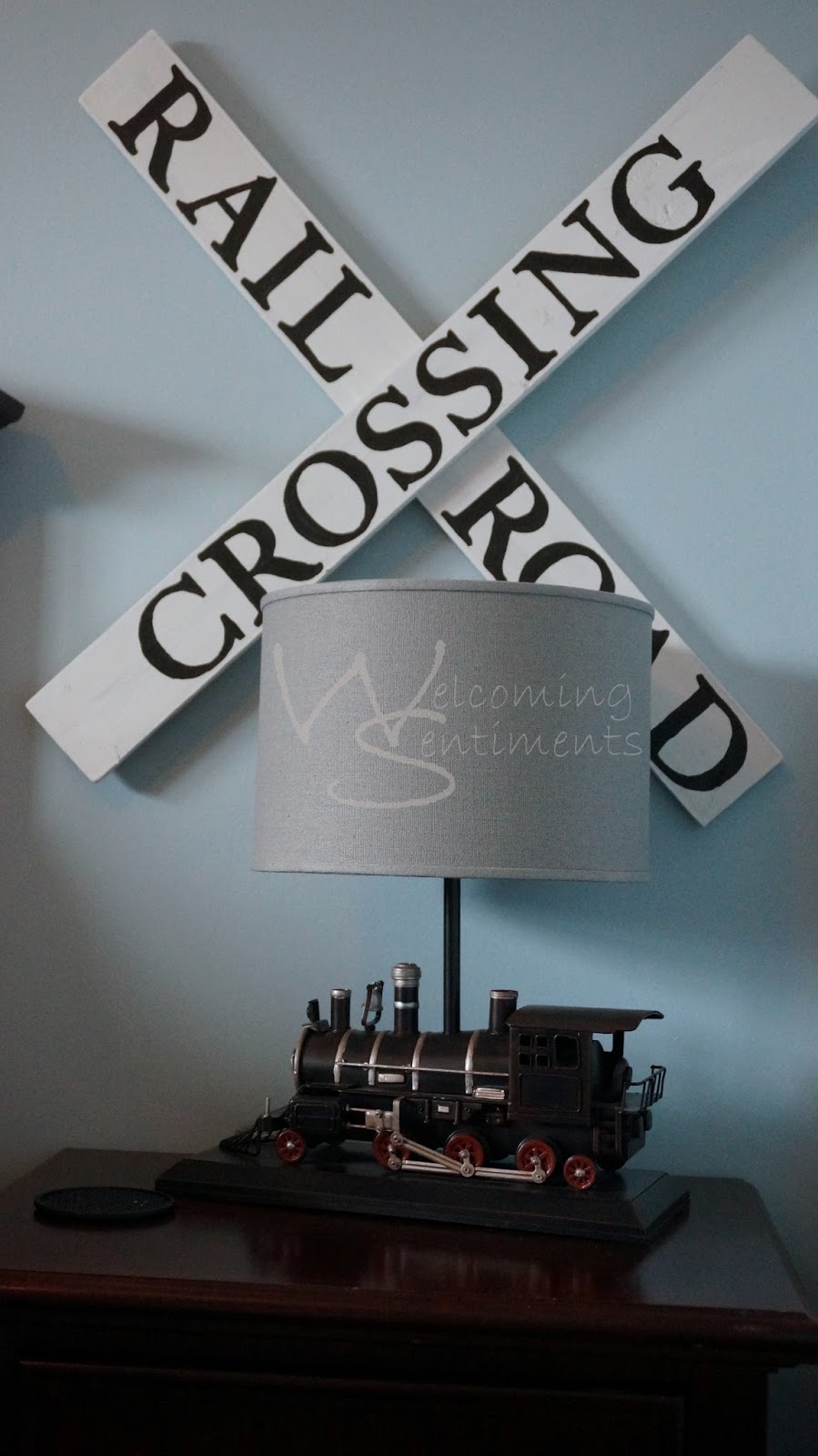I found the train lamp at Pottery Barn Kids.  It wasn’t cheap but how can I not have it when doing a train room!