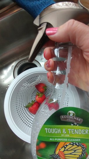 When washing my produce I use my regular non toxic all purpose cleaner. The food lasts longer and you can visibly see the difference in how clean they become. A picture doesn’t do justice to the difference so you’ll just have to trust me 😉
