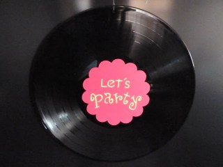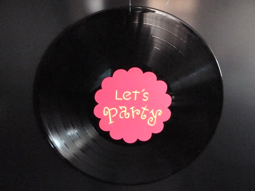 The centerpieces are frames I painted black and then used black electrical tape on the inside to attach the 3 together. I printed pictures of mom and Beatles related things on vellum paper. The glass is still in the frames, just not the back matting so the candle lights up the photo. Scott picked up a bunch of old records at Good Will so I just covered them with colored paper and we used those to set the centerpieces on as well as other decorations. The idea for the centerpieces came from Martha Stewart. The instructions for the tissue poms I also found on Martha Stewart. I know a lot of people don’t like Martha but I do and DVR her show daily!