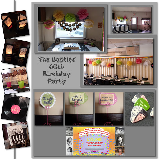 Well we managed to pull it off. Mom was completely surprised and with so many people from a small town invited this is a big accomplishment! I had fun thinking of all of the ideas for the party. Some of them were not my original idea most were not necessairly Beatles related just good ideas that I incorporated. Here’s the scoop…